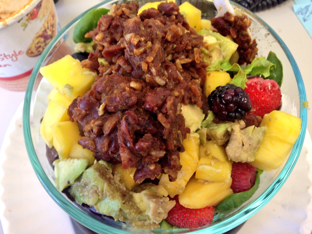 I made a quick salad with (4) glass and plastic containers out for sorting. layer of kale, layer of spring greens, layer of berries, layer of mango. I then took out the avocados and placed them in a separate bowl, diced with lemon, salt, and pepper. Then took out a measuring cup. I needed 1 cup of cereal in bags for my breakfast. I keep a container of all my cereals mixed together. I think it is more fun than just one type of cereal. I scooped (1) cup portions into biodegradable zipper sandwich bags that I got at Whole Foods a few months back. I keep a cereal bowl at work and then packed myself some extra hazelnut milk and salad dressing. I then cut slices of the bread in half and put a thin layer of Earth Balance on each using the same knife from the avocados. I put the bread in the same type of bags as the cereal. Done. 4 days, 8 meals. I keep reusable utensils and dishes at work that I rinse and wash out in the bathroom. So I was all set. We have a kitchen downstairs too for more complicated cleaning.