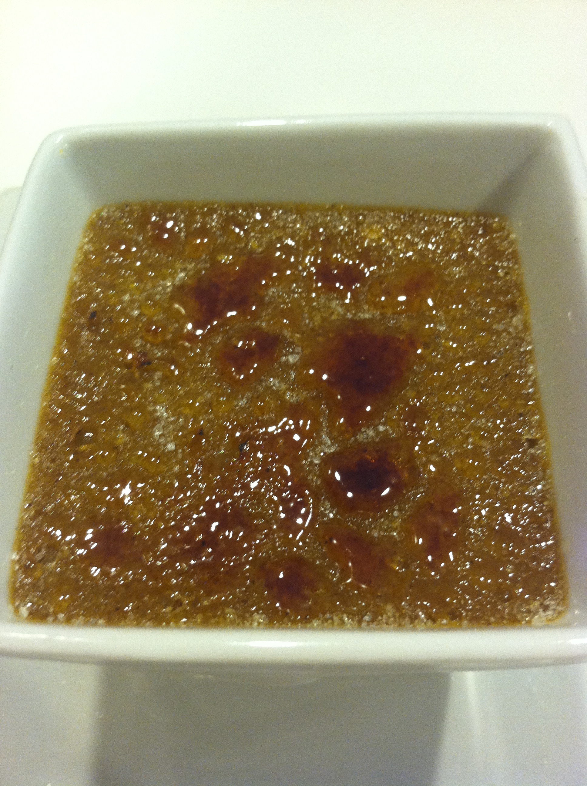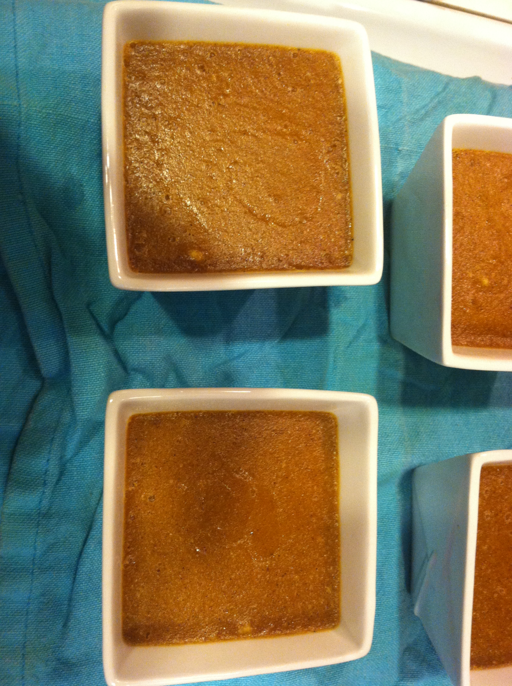 Fall is the time for puddings both warm and cold. There are bread puddings (my mom’s favorite) and the more exciting french puddings like the creme brulee and then there are the puddings I would never eat like black pudding. My favorite has always been a vanilla bean creme brulee with a good crunchy crust and a thick custard filling but not to sweet to offset the brulee. My parents would bring us to brunch on Easter and Mother’s day and I would always run over to make sur ethe hotel had the little ramekins of this dessert. So I tried to replicate it now as a vegan with a few fall fun flavors. This is my first of a series of three I will post this week (all tested and approved by the omnivore husband). They are all easy to prepare (35minutes max) but the cooling process (2hrs min.) causes it to be something you have to make in advance. Since everyone in the office was talking about apple picking on Friday we shall start with apple! Enjoy!