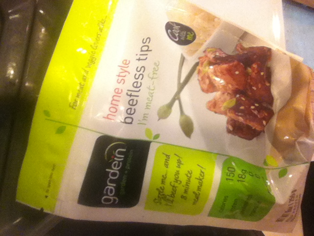 • Add (2) packages of Gardein Beef Tips. Cook until slightly soft and seared about 3-5 minutes.