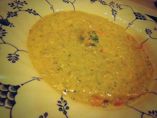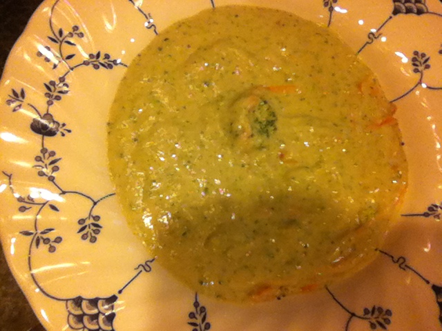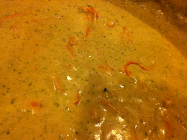 I then boiled a broth of onion soup mix and 4 carrots for about 20 minutes and then poured it into my vitamix. Blend until smooth and transfer back to the broth saucepan to warm through.