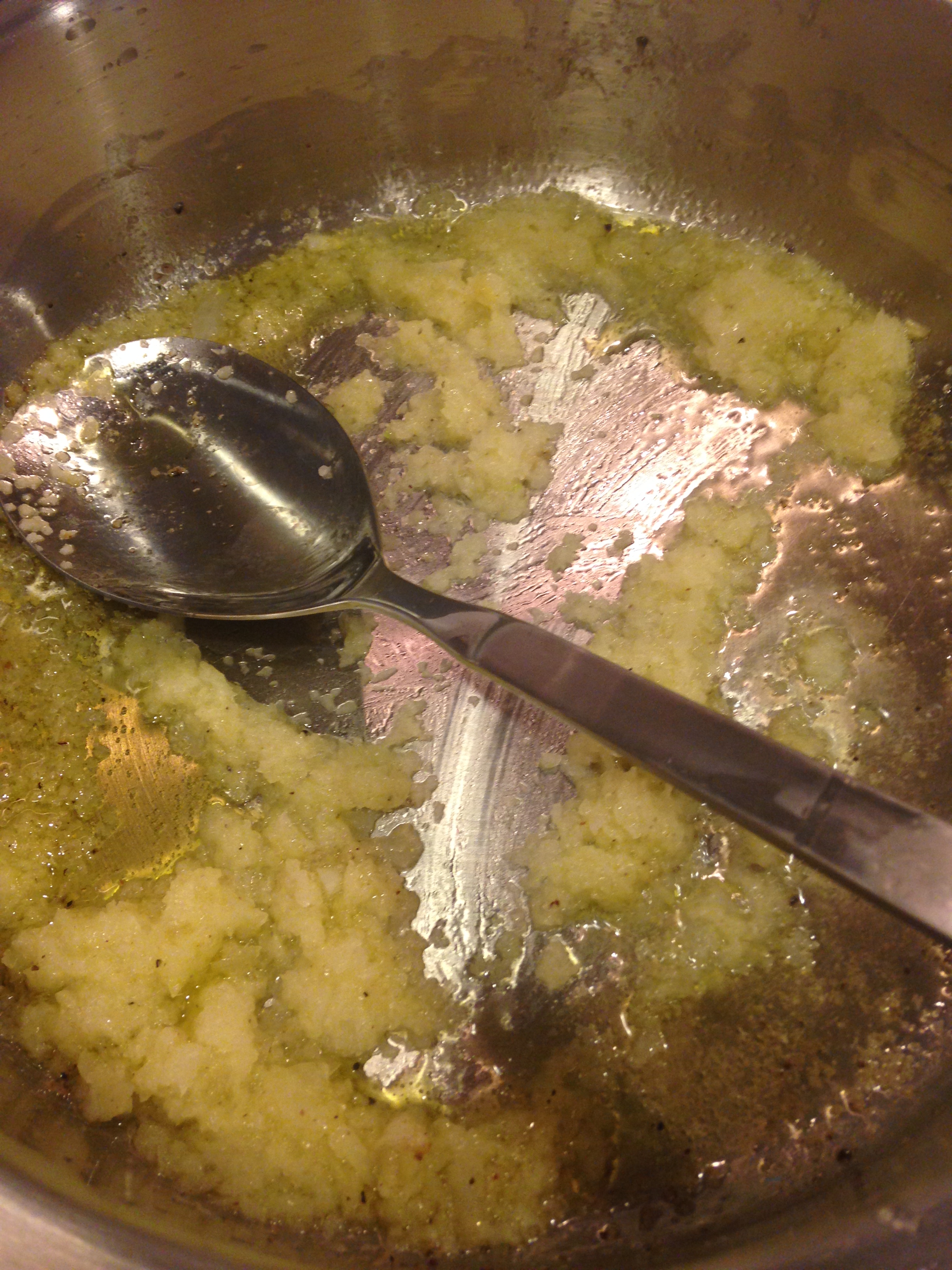 • Take 1 stick of butter place in pan and scrape the bottom bits up. Add Garlic.