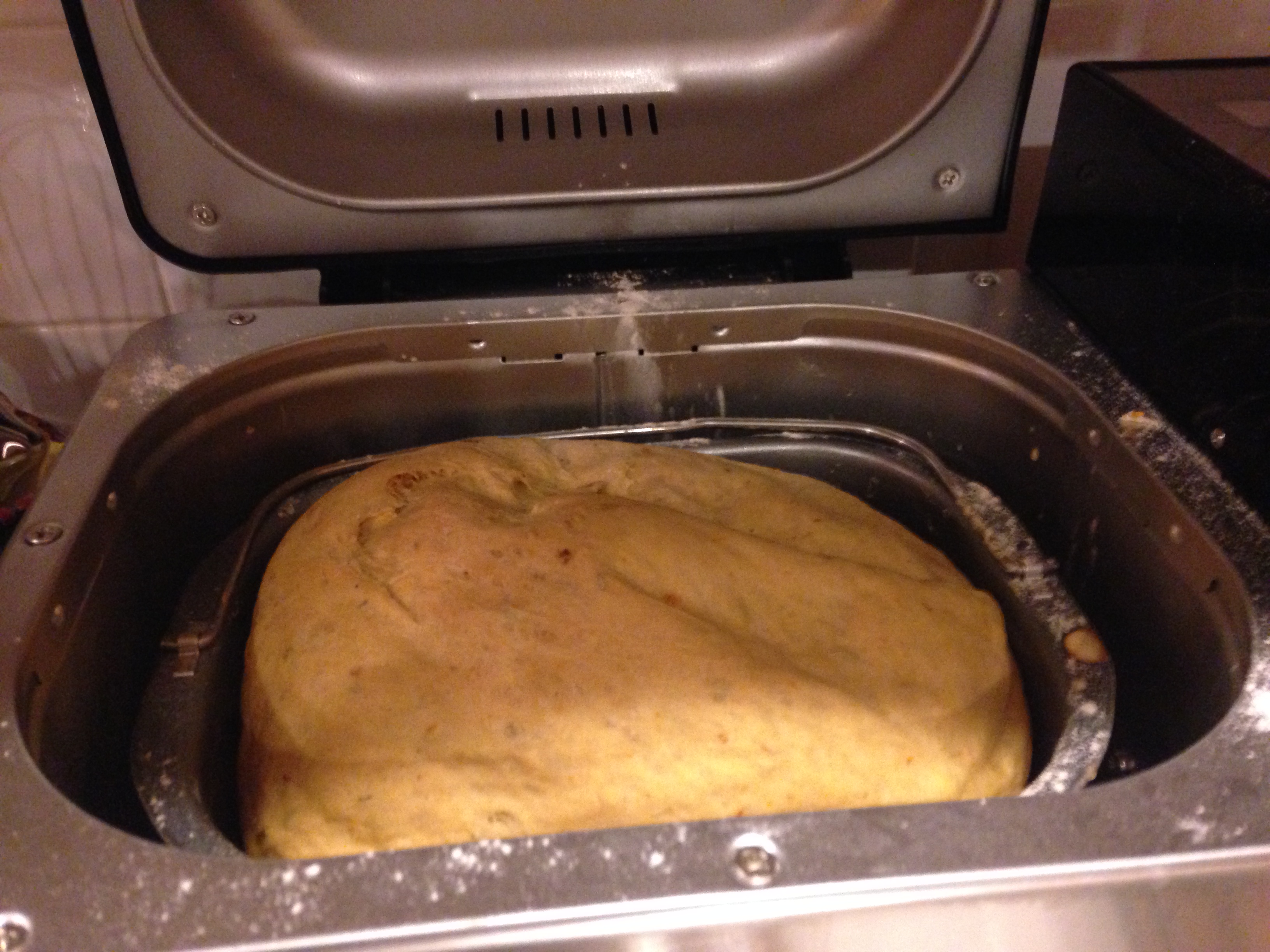 I have wanted a bread machine since the day I saw one in a thrift store in Imperial Beach, California. It was $10 and looked like a deal to me. Although I am bummed I didn’t buy it back then I am glad now because I think I would’ve lost my love for them. The reviews on the cheaper models are terrible. They look like war stories of collapsed breads and mutilated pasta dough. That should be a crime because honestly breads and carbs are the only thing that make people truly happy sometimes and if they do all that work to make them from scratch and not go buy a slice of 8,000 calorie banana bread from the coffee shop, then they should be rewarded with something wonderful. Instead the bread falls in the center creating a volcano of doughy gooey mess that one must carefully discard without losing the little rudder that helps knead the bread in the bottom of the baking pan. (Yes, I have thrown mine out and had to recover it already). That being said over the weekend I was very sick with bronchitis. I think I may have coughed up my lungs. So what better to do when stuck in the house for a few days but bake.