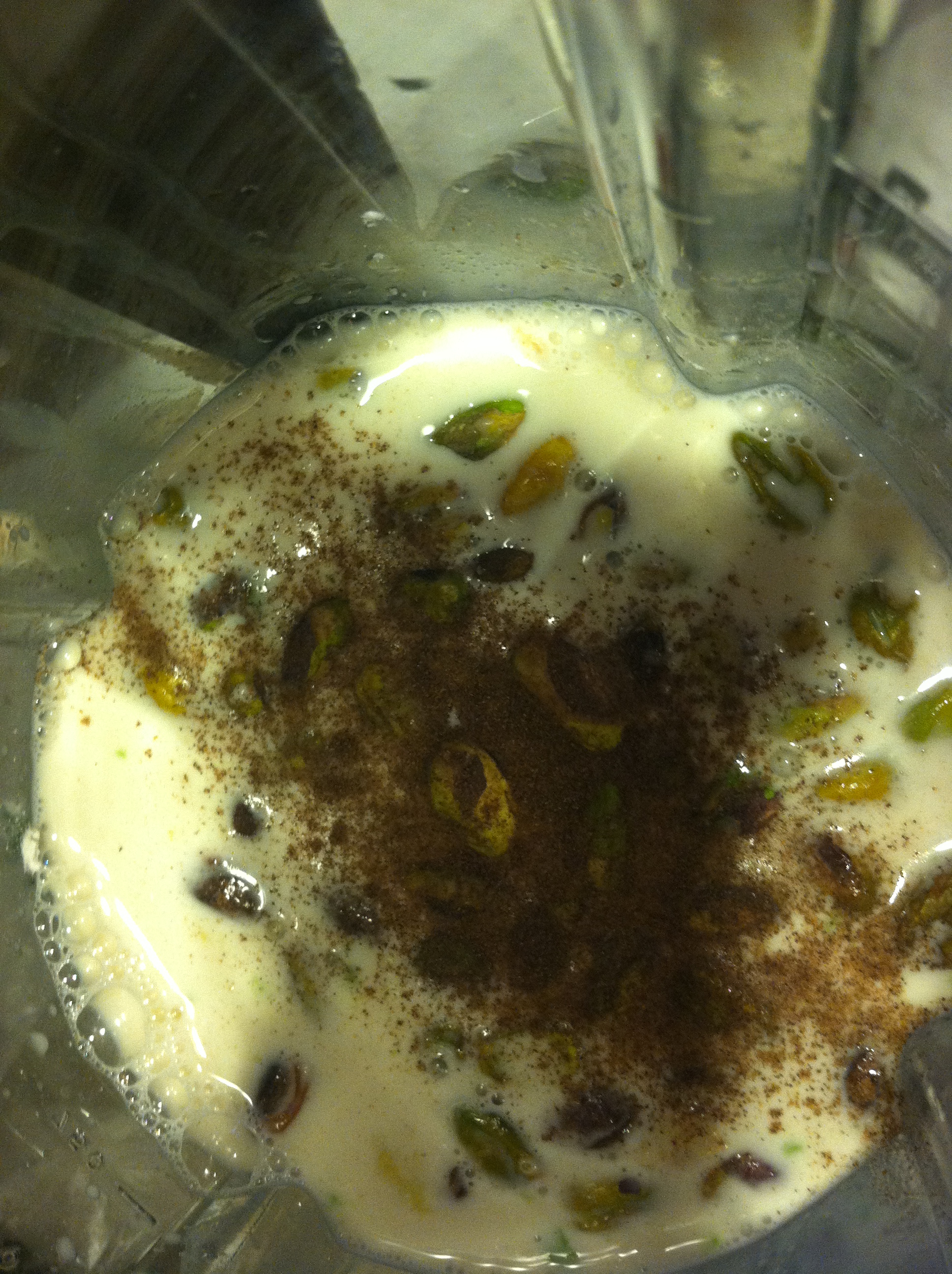 If you do not have a high powered mixer soak cashews and pistachios for at least 4 hours or overnight so that the batter will not be grainy. Also, place half the nuts in at first and the second half after most ingredients have liquified.