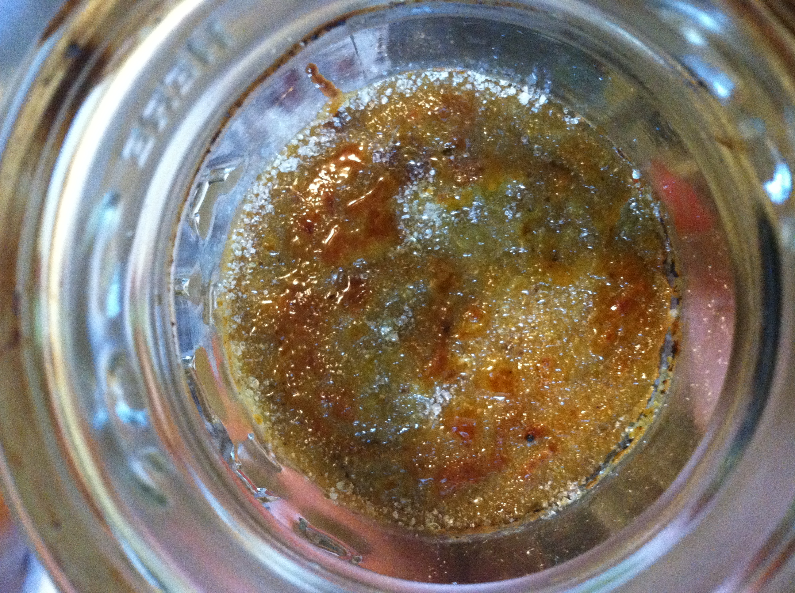 After the creme is completely firm and chilled through and you are ready to serve. …Take sugar, sprinkle a good layer on each creme top, and brulee with a hand torch until the sugar bubbles, browns, and quickly hardens.
